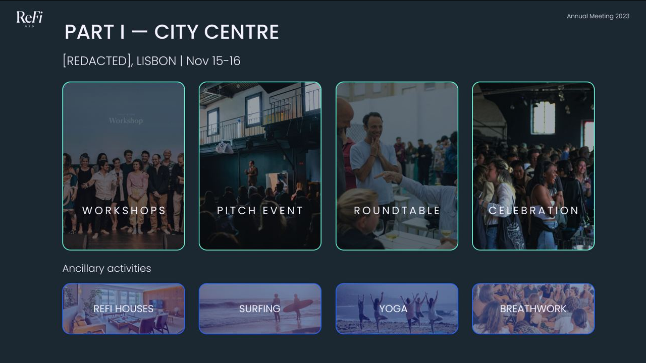 The first part of the meeting will take place together with Regens Unite on November 15-16 at a private venue in Lisbon. We're calling for an intimate assembly of local leaders and global pioneers of the emerging regenerative economy. Keep an eye on your inbox, regens, we can't wait to see you there!