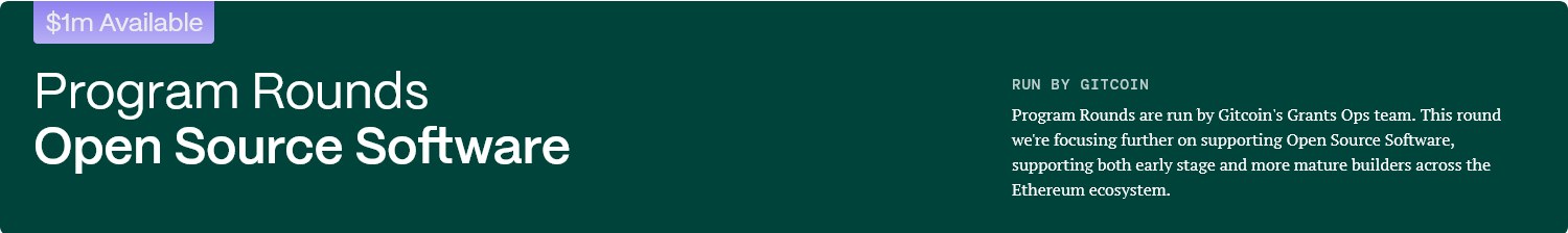 Gitcoin's Open Source Software (OSS) program rounds are dedicating $1 million in match funding to support both nascent and mature builders within the Ethereum ecosystem, focusing on crucial areas such as Web3 Infrastructure, Developer Tooling, dApps and Apps, and supporting promising projects from hackathon alumni.