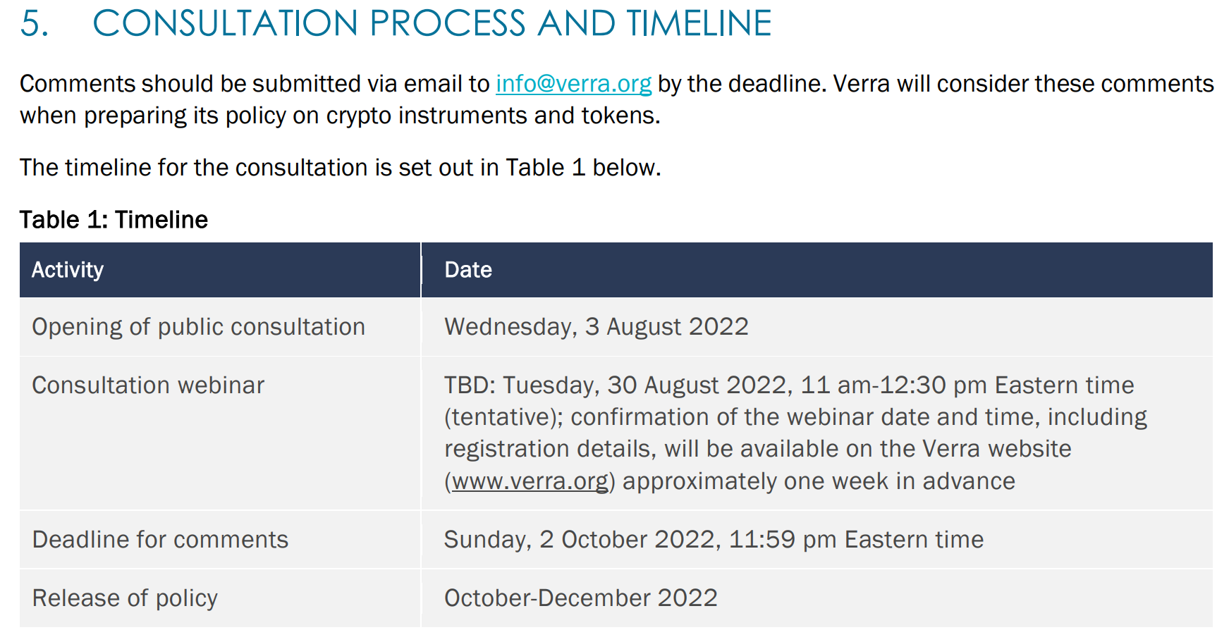 In a missive published August 3rd, 2022, Verra laid out a timeline and goals for the consultation process.