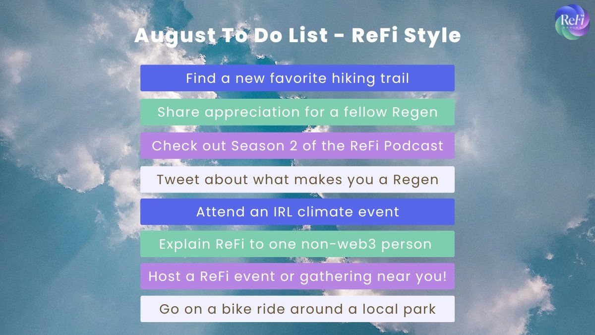 At the start of August, ReFi Spring posted an interesting “To Do List” for regens:
