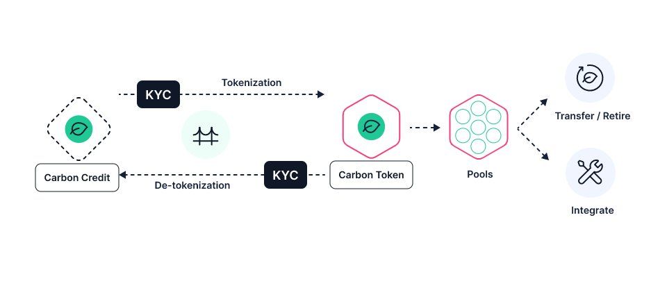 KYC will be required on Toucan infrastructure when interacting with its proposed two-way bridge for tokenizing & de-tokenizing carbon credits. Non-KYC'd entities will still be able to interact with Carbon Pools, build on top of Toucan, trade carbon credits and retire carbon credits. As such, the design is meant to allow for trust & security without hindering the growth, innovation and inclusivity of the on-chain markets.