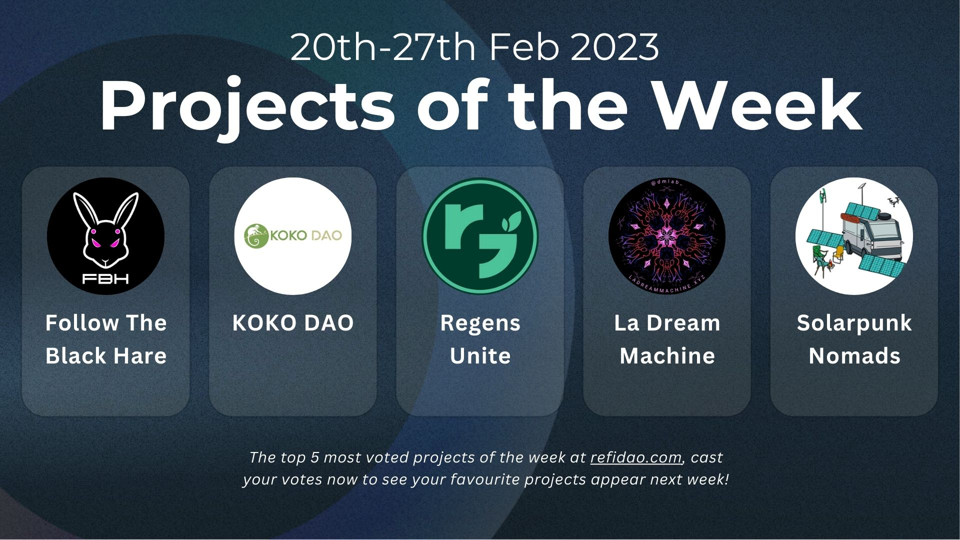 Here are the top 5 most voted projects of the week at refidao.com: