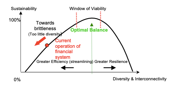 But what are we to do? Return to the gold standard? Hardly. Bernard had a different recommendation, which was to diversify our economical systems so they were in line with the way nature designed ecological systems: as a balance of streamlining for efficiency with diversity and interconnectedness for resilience.