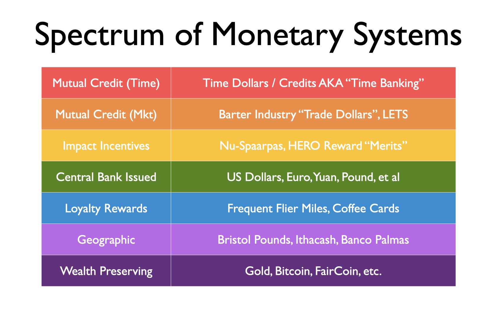 What does that look like? It looks like a full spectrum of monetary and financial mechanisms, and any number of the technologies that provide access and use of the same, working together in service of a post-extractive, pro-regeneration way of being for humanity on the planet.
