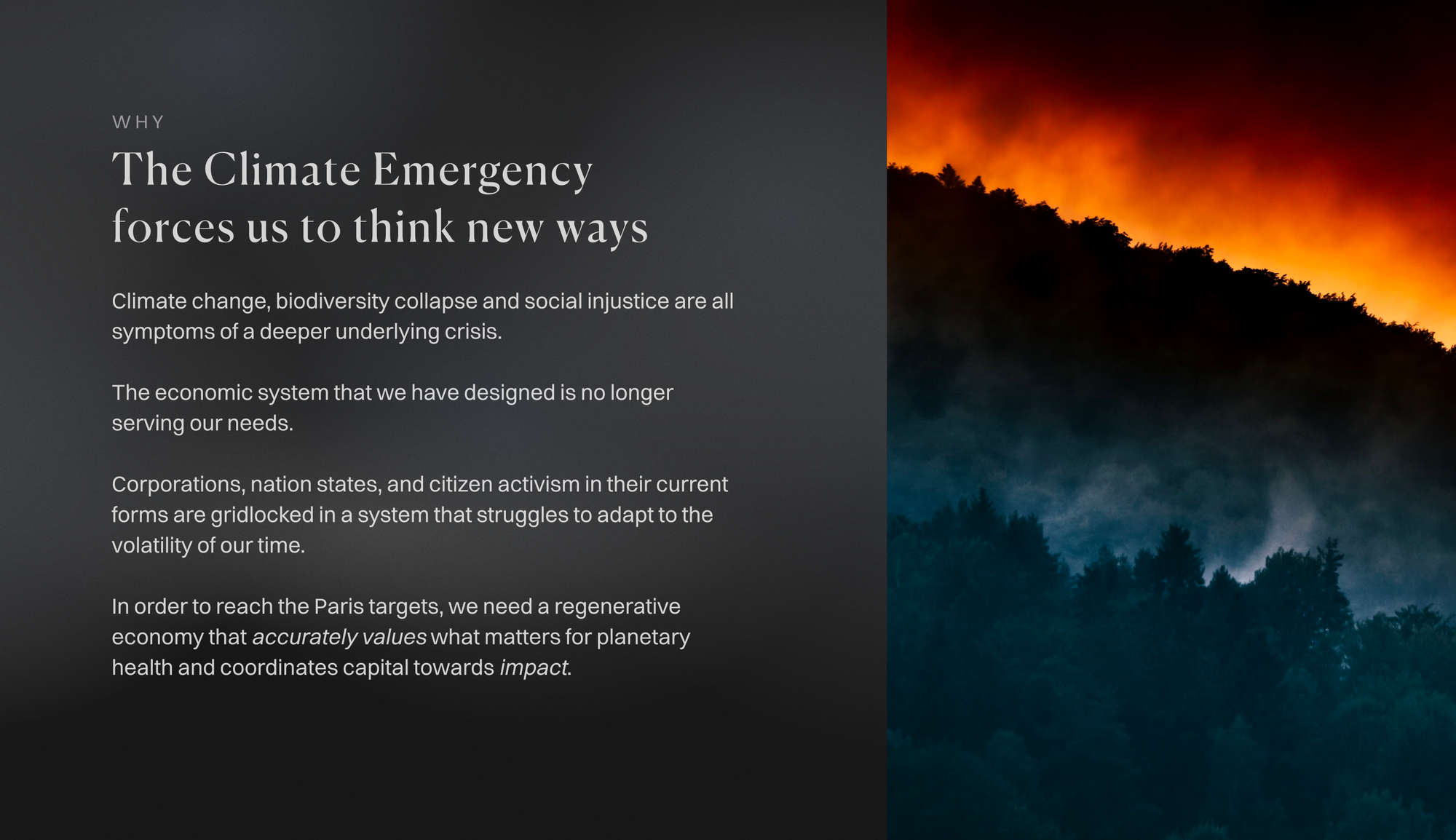 The idea was born out of a sobering observation: existing institutions β be they nation-states, corporations, or civil society β have persistently fallen short in tackling the pervasive threats of climate change and other critical challenges of our time. The urgency for a leap in innovation across cultural, social, economic, and technological domains is crystal clear. Driven by this realization, ReFi DAO formulated a mission to bring about a global regenerative economy, fostered by a transformative global network of mission aligned local communities.