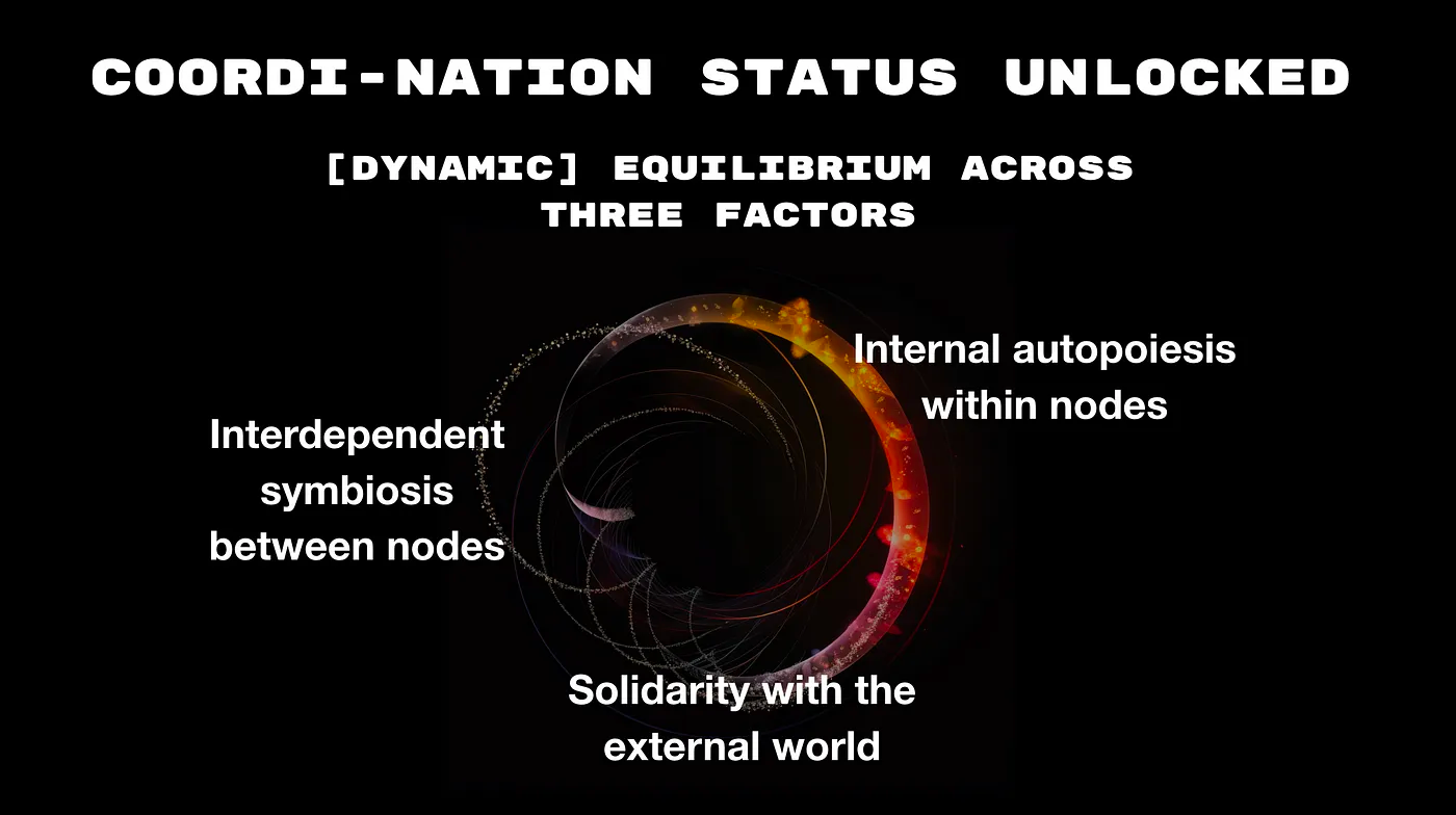 What sets Coordi-nations apart from traditional nations, even from the concept of the Network State proposed by Balaji, is their emphasis on voluntary association, shared values, and mutualism rather than territorial limitations. Their sovereignty is carved out in the digital sphere, and grounded in participatory governance and decentralized decision-making. Individuals can be members of multiple Coordi-nations, fostering a rich landscape of co-existing identity.