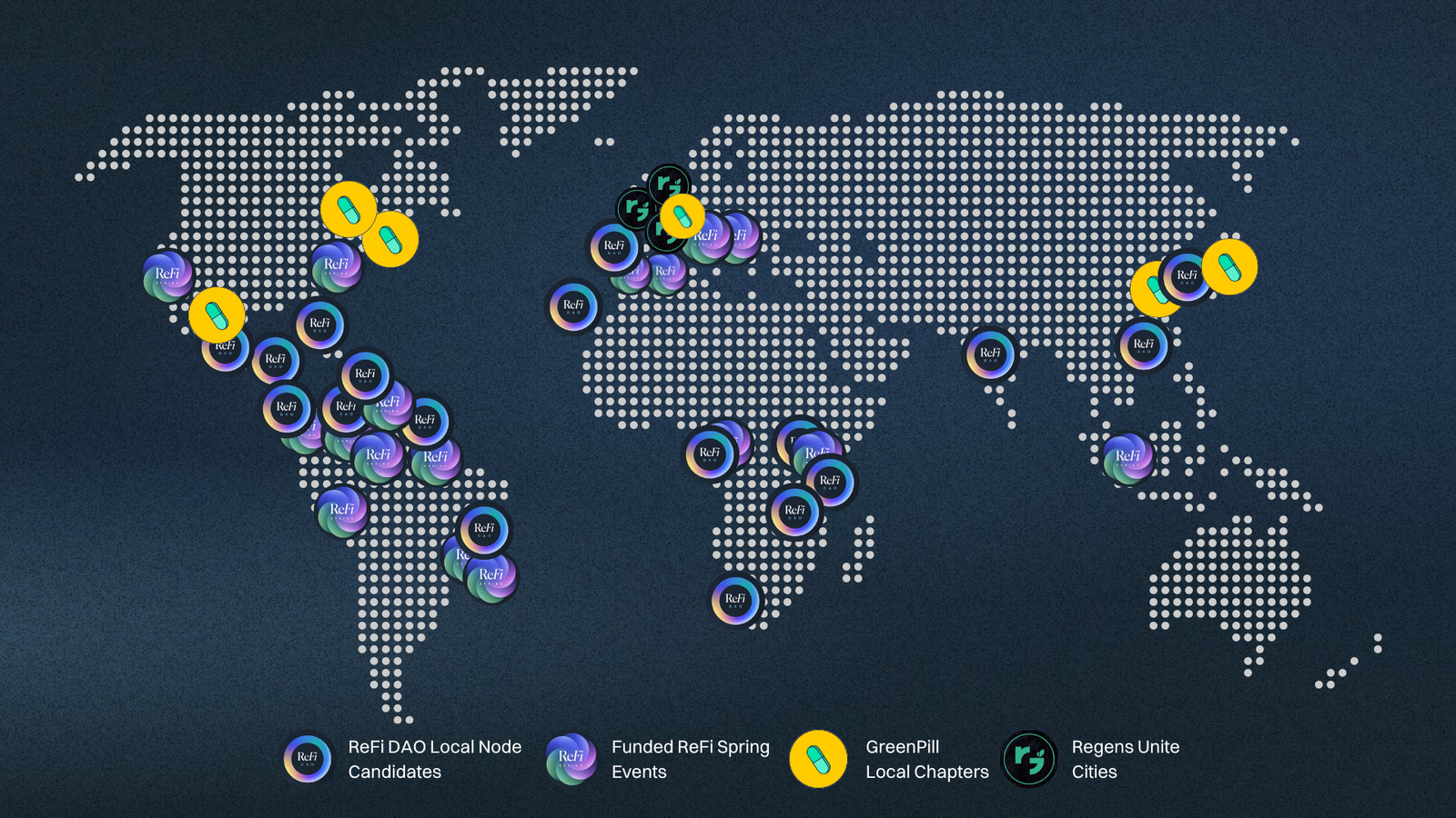 Taking this concept in a new direction, in February 2023 ReFi DAO announced a vision for a network state as a vehicle for planetary regeneration. The model imagined a globally dispersed, but deeply connected organization that takes form as a decentralized network of local startup communities with a mission to catalyze both inner and outer regeneration and pioneer a new paradigm.