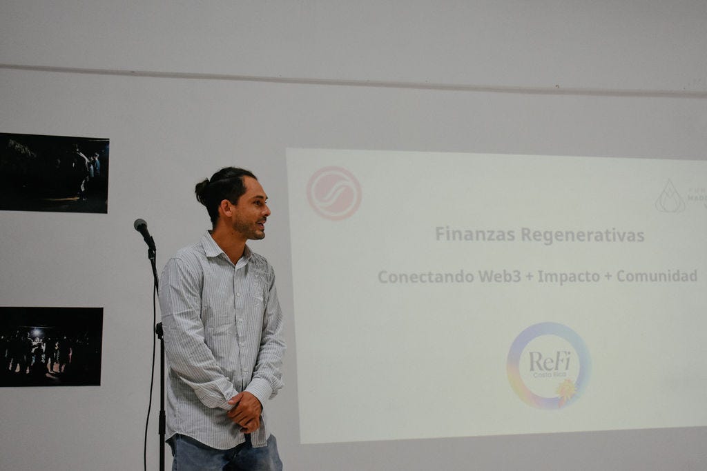 I vividly recall the moment we all gathered around a table, the logo of ReFi Costa Rica playing backdrop to our discussions over pizza. Criptocantina is a weekly event that gathers individuals interested in blockchain and cryptocurrencies, and this time it was focused on regenerative finance as a preparation for the main event happening the next day.